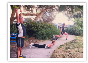 Body weight workout of the week: 16 x 20 secs work/10 secs rest of jogging with high knees on the spot then push ups (8 rounds each) rest for 2 minutes then 24 x 20 secs work/10 secs rest of skaters lunge (massive side step jump lunge so that you shift your weight each time) then burpees, then sit ups (8 rounds each). I did this with my Coogee group and also a couple of my one on one clients. It’s a good one!